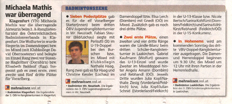 Die Vorarlberger Nachrichten über Aktuelles in der Badmintonszene.